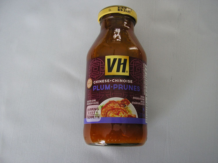 Eau, sucre, purée de citrouille, vinaigre, purée de prunes, pâte de tomates, amidon de maïs modifié, mélasse, ail déshydraté, sel, benzoate de sodium, arôme de citron, assaisonnement, épices.